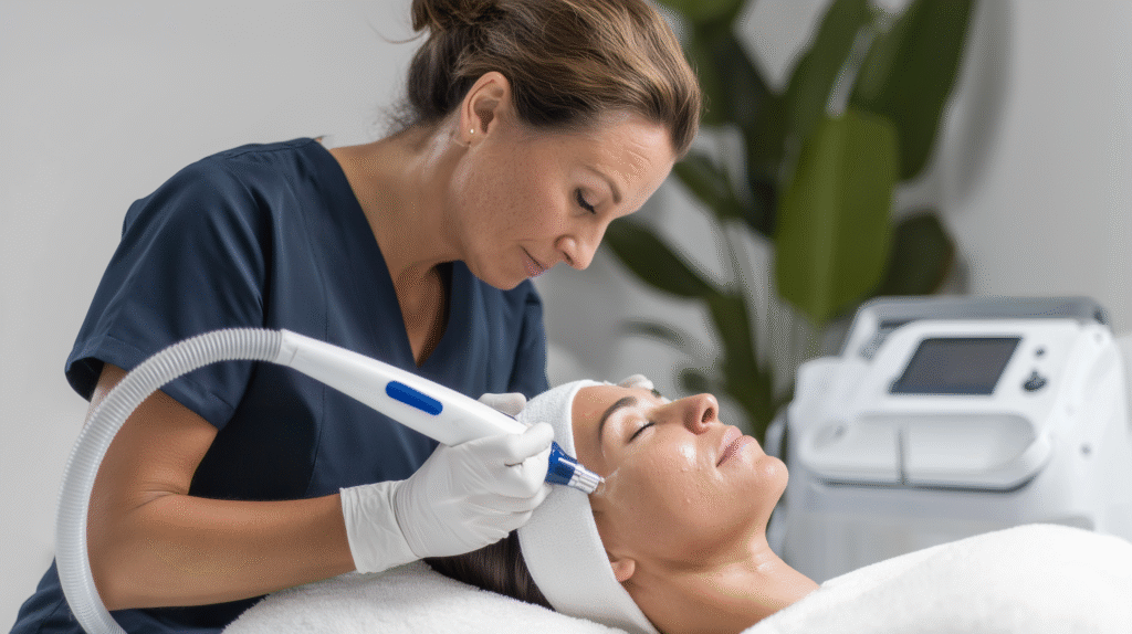 This is a non-invasive deep purification and hydration treatment. It uses unique vacuum suction and micron water-jet technology to gently remove deep-seated dirt and dead skin cells from pores, while deeply infusing professional serums into the skin.